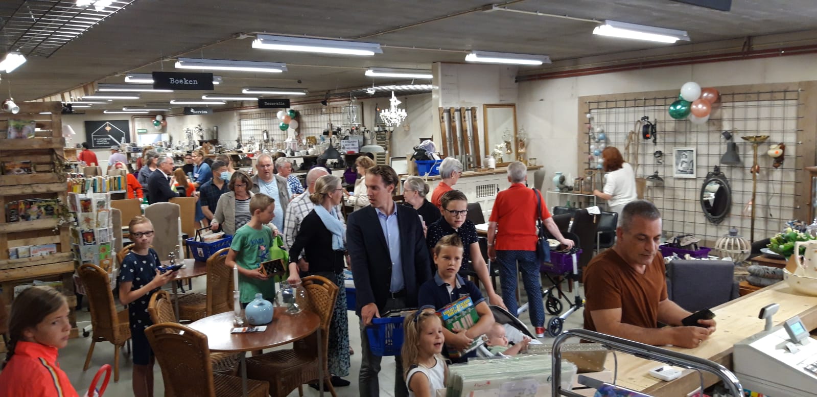 Na de opening konden de aanwezigen naar binnen om hun eerste inkopen in de nieuwe kringloopwinkel te gaan doen. De winkel heeft twee verdiepingen met een totale oppervlakte van 450 vierkante meter. Op de leuk en overzichtelijk ingerichte benedenverdieping bevinden zich de afdelingen huishoudelijke artikelen, boeken, curiosa, elektrische apparaten, tuin & gereedschap en meubelen. Op de bovenverdieping is de kledingafdeling te vinden, met een ruim assortiment aan kinderkleding, dameskleding, herenkleding en schoenen. Ook is daar een speciale afdeling voor speelgoed.