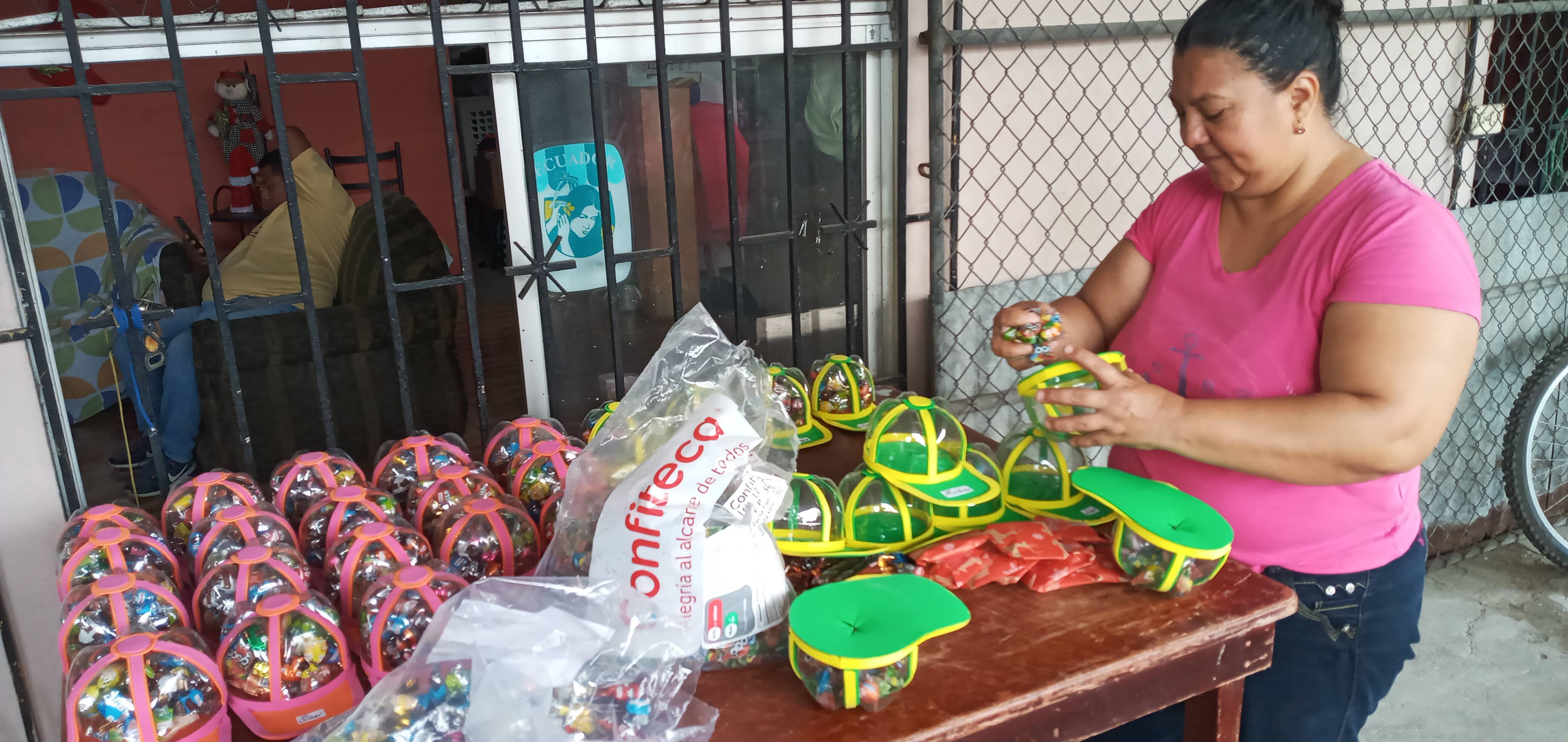 En wat dacht je van deze petjes? Ja, je hebt het goed: Manuel en zijn moeder en zusjes knutselden dit ook in elkaar voor de kerstviering in het adventspakket!