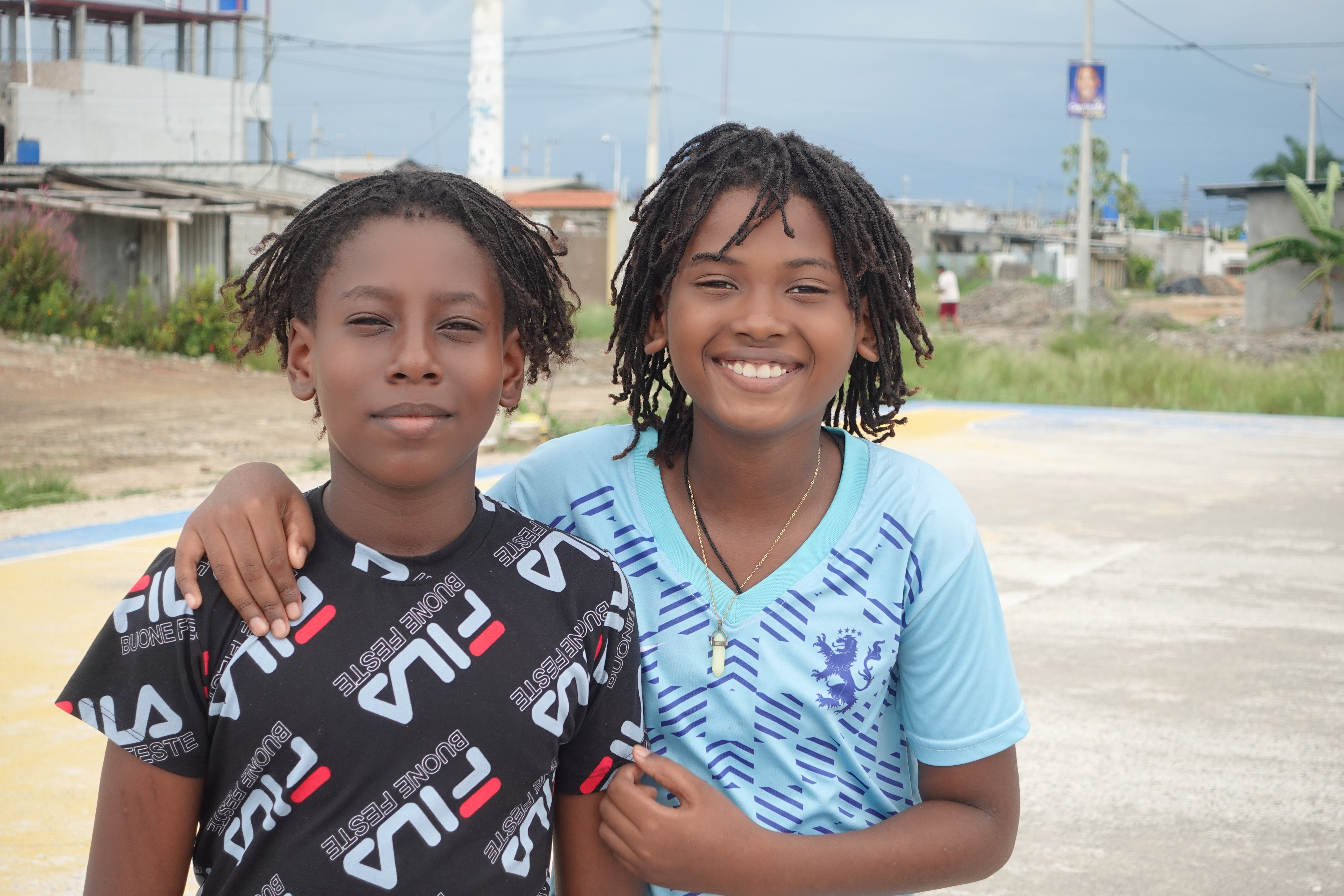 Twee jongens uit de barrio in Machala die graag op de foto wilden voor familie Baan. Zie je dat ze wel een beetje op Manuel en Alex uit het adventspakket lijken?