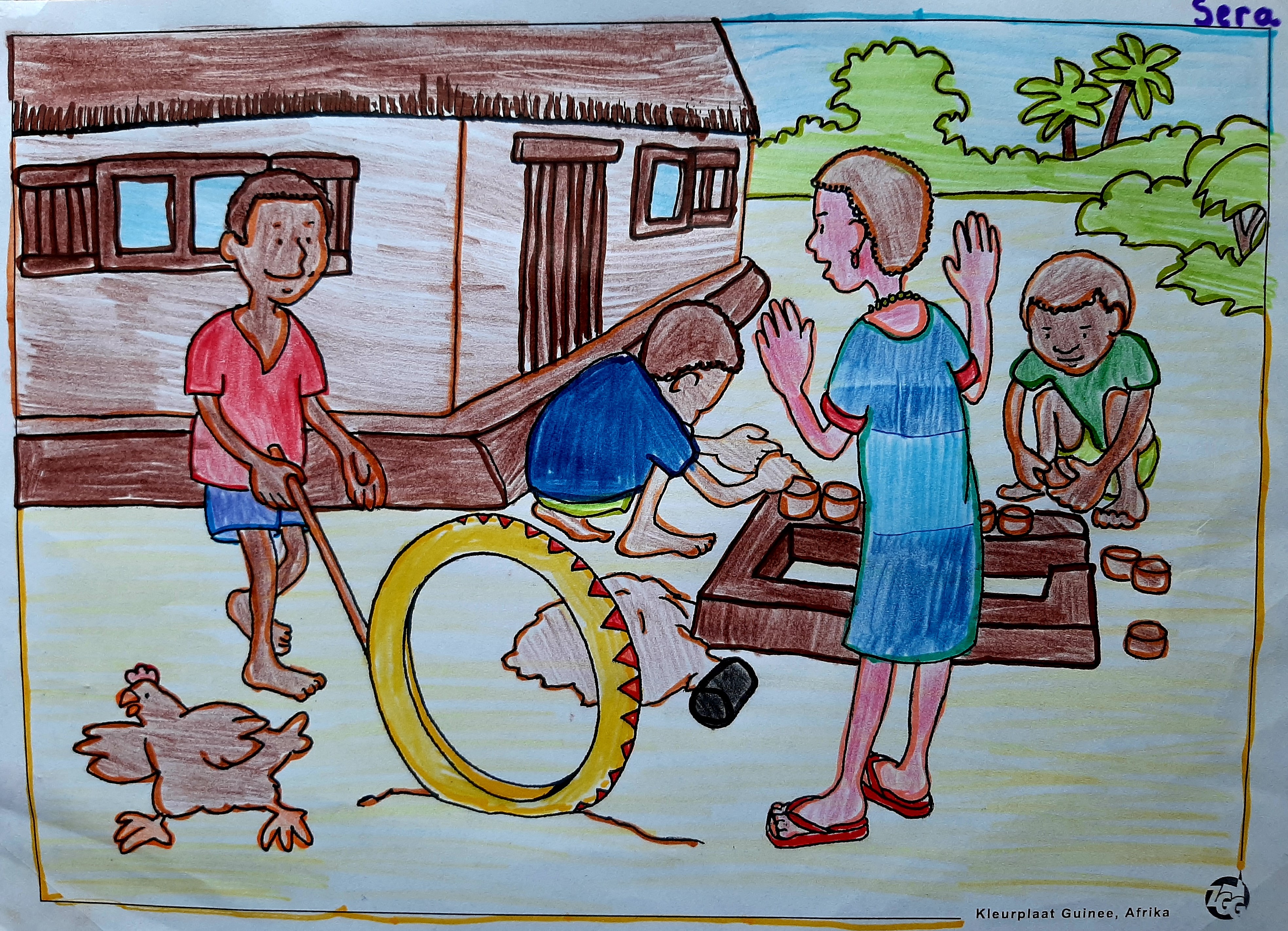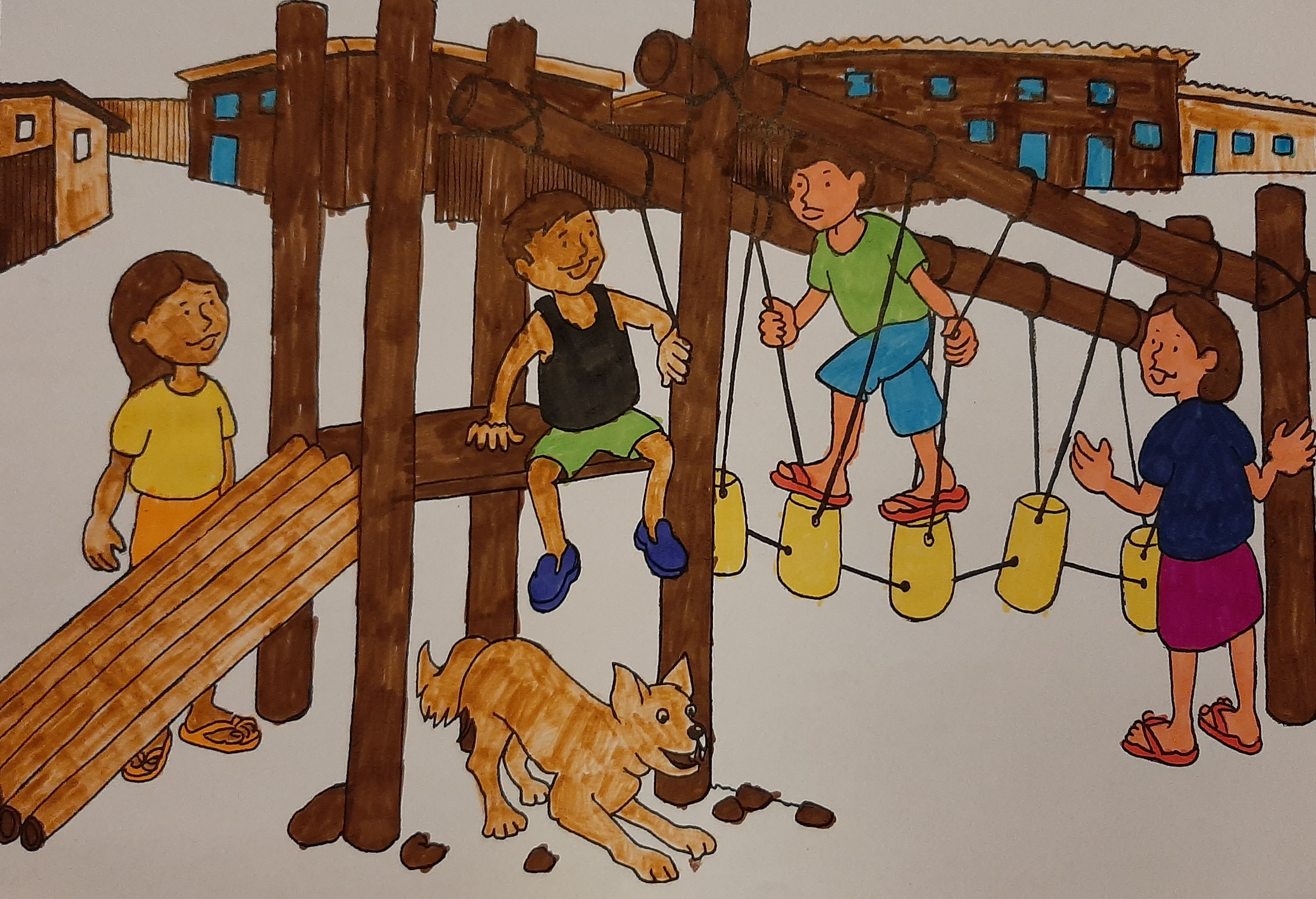 Ook Isa maakte vast een mooie kleurplaat voor deze website. Je ziet hier een speeltuin vlakbij een van de kerken in Ecuador.