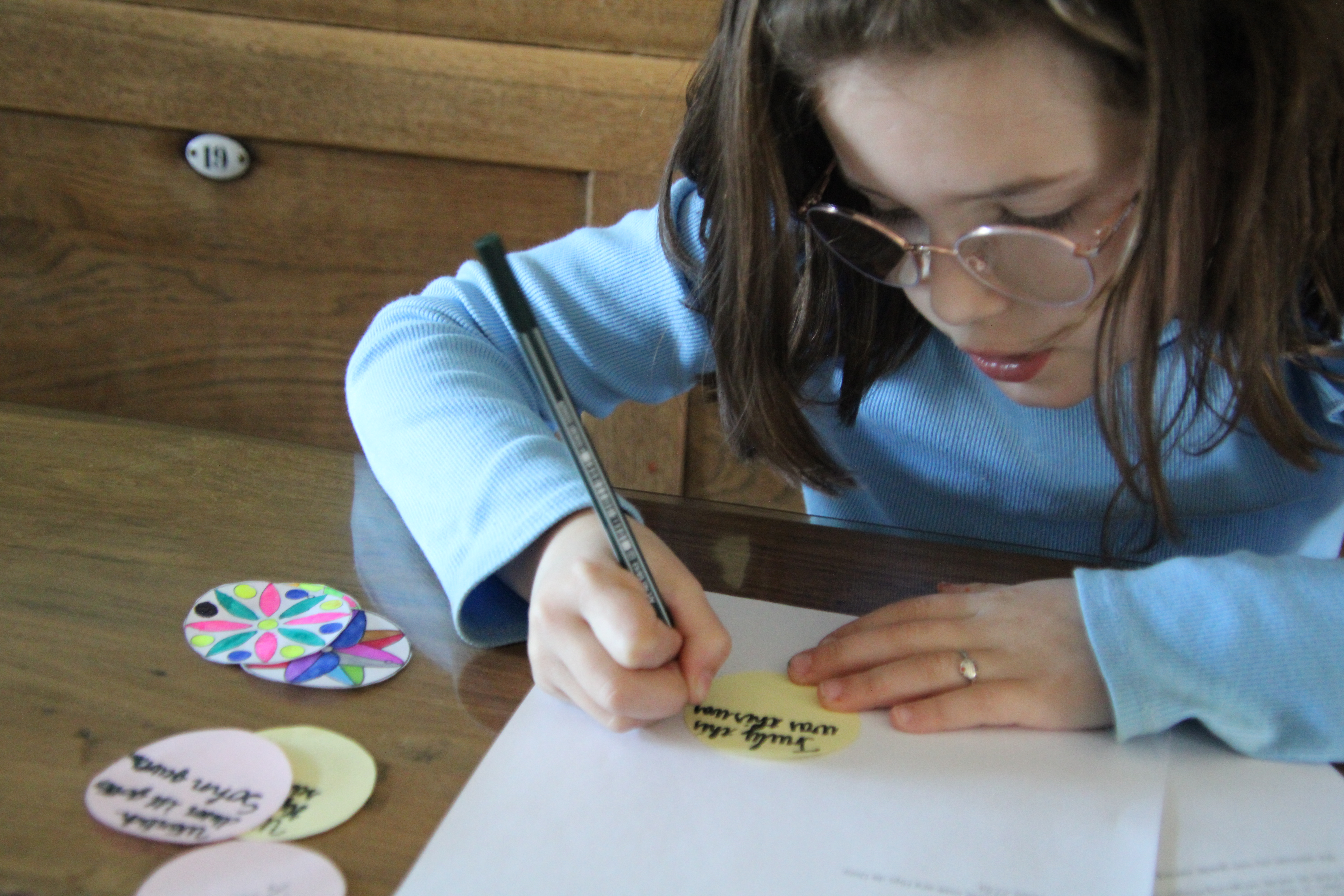 5. Voor de overige 3-4 rondjes knip je een leeg rondje van wit of gekleurd papier. In elk rondje schrijf je de bijbeltekst Waarlijk, Deze was Gods Zoon! Gebruik verschillende talen (zie bijlage 1 of zoek zelf op internet).