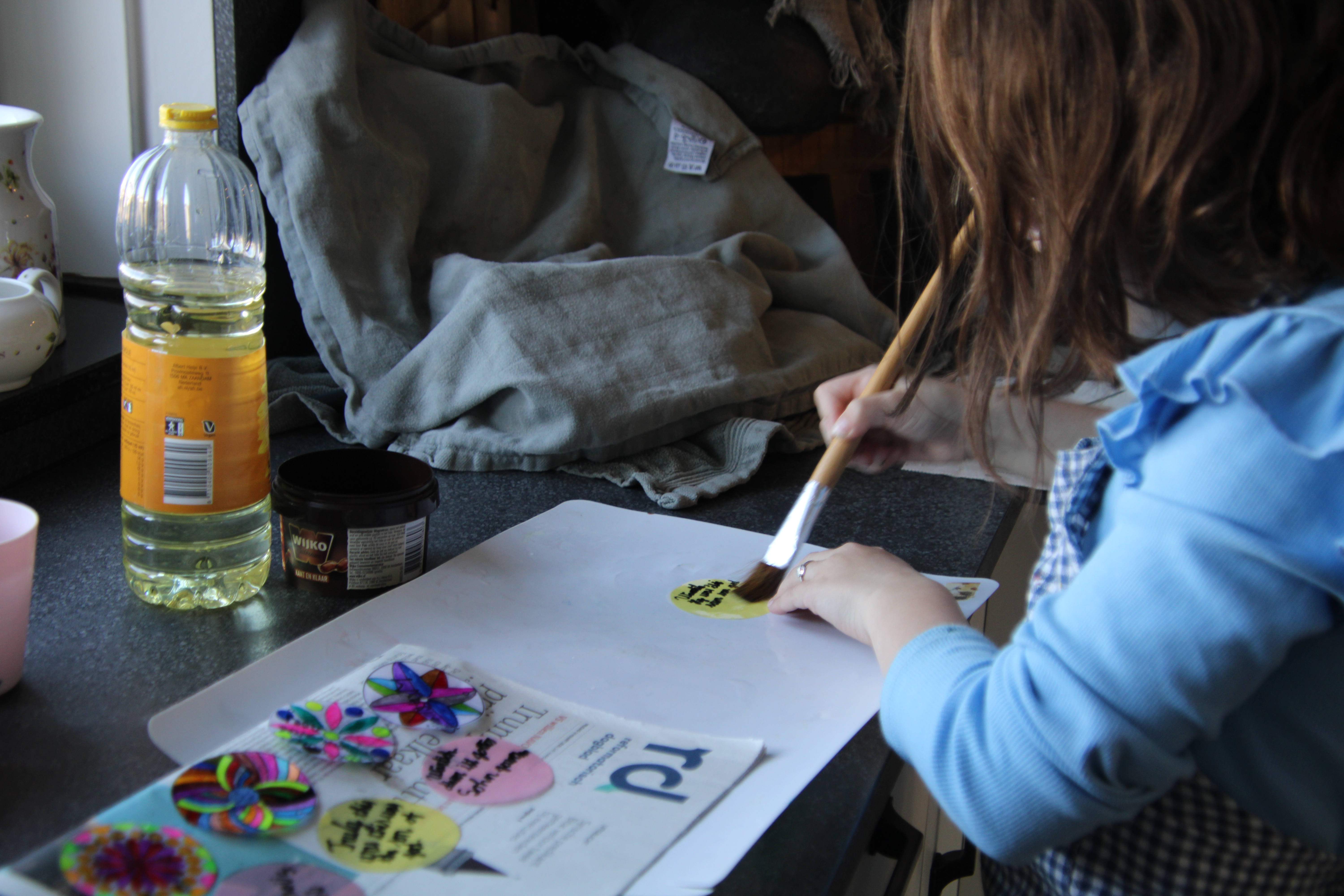 8. Leg de rondjes te drogen op een oude krant. Dat duurt 1-3 dagen, afhankelijk van hoeveel olie je hebt gebruikt.