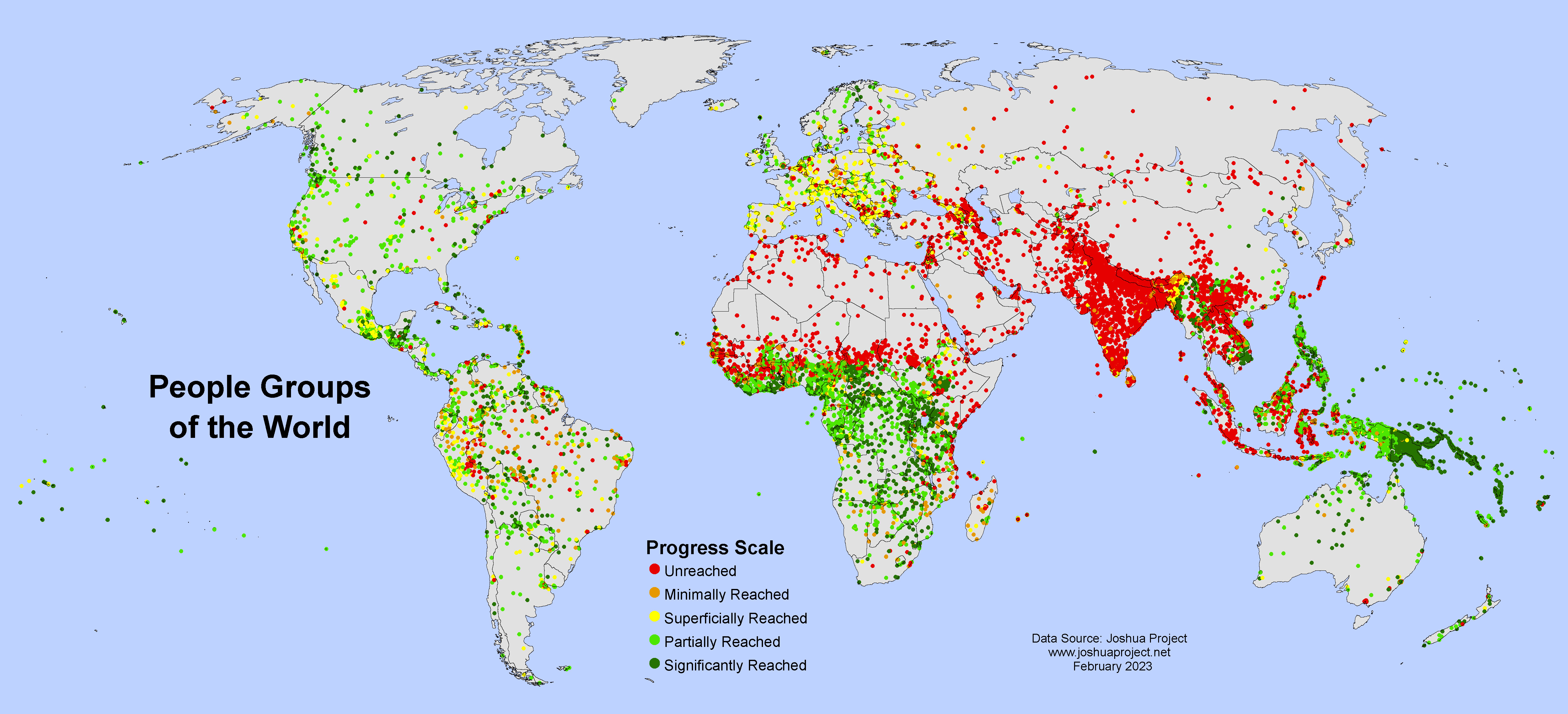 Kijk nu nog eens naar de kaart van Joshua Project waarop met talloze rode stippen staat aangegeven waar onbereikte volken zijn.