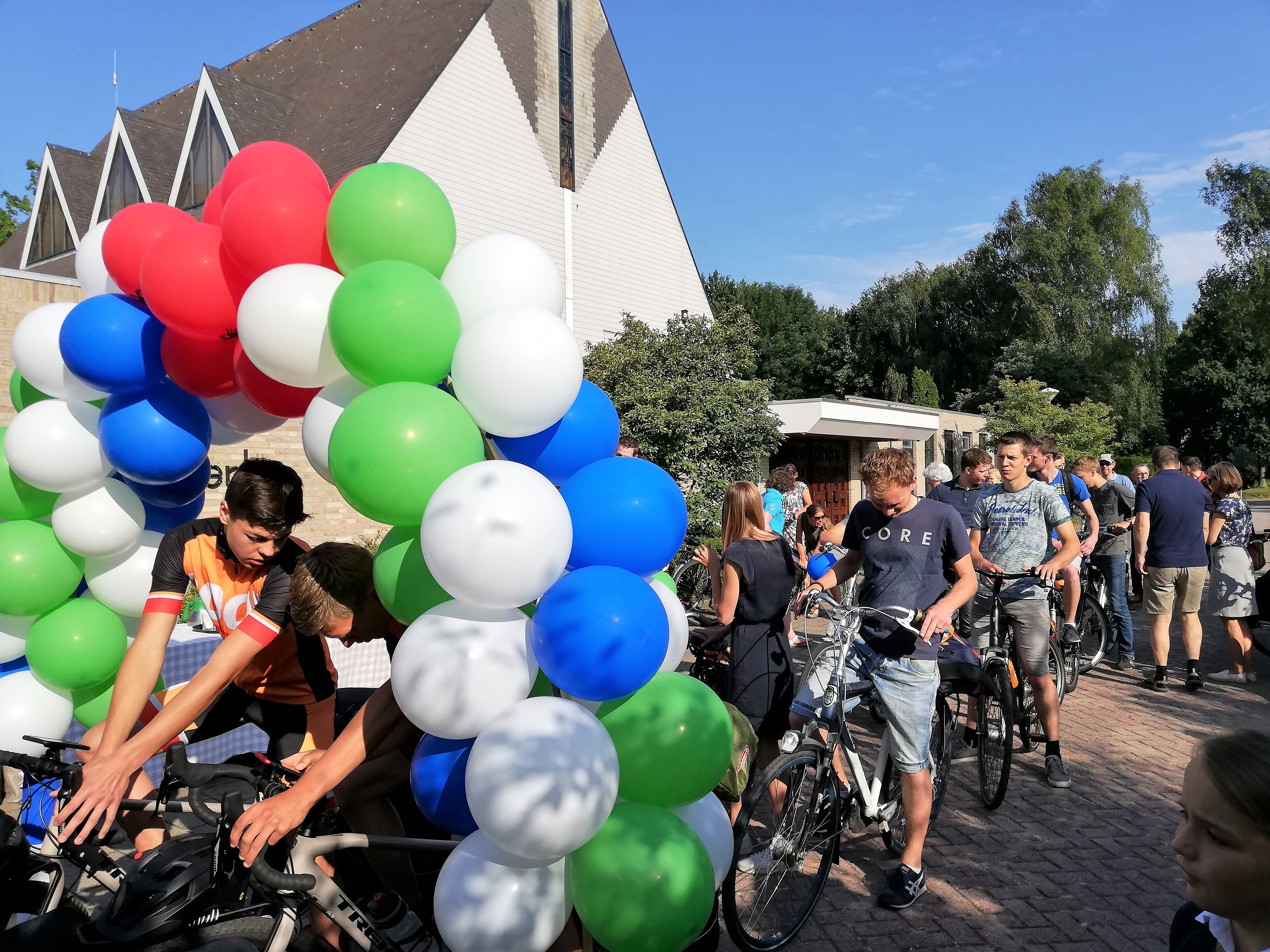 Afgelopen zaterdag was het dan eindelijk zover. Vergezeld door 15 meefietsers en uitgezwaaid door 50 mensen vertrokken wij richting de Duitse grens. De tocht verliep zonder problemen, op twee lekke banden na. Na 60 km hebben we pauze gehouden en geluncht in Veenendaal. Rond 17.00 uur kwamen we aan in Babberich, een dorpje op de grens. Nadat we afscheid hadden genomen van de meefietsers gingen wij weer op pad om de laatste kilometers af te leggen. Omdat het ging regenen stopten we iets eerder en zetten we na 10 km de tent op op een klein campinkje. Daar bleven we tot maandagochtend.